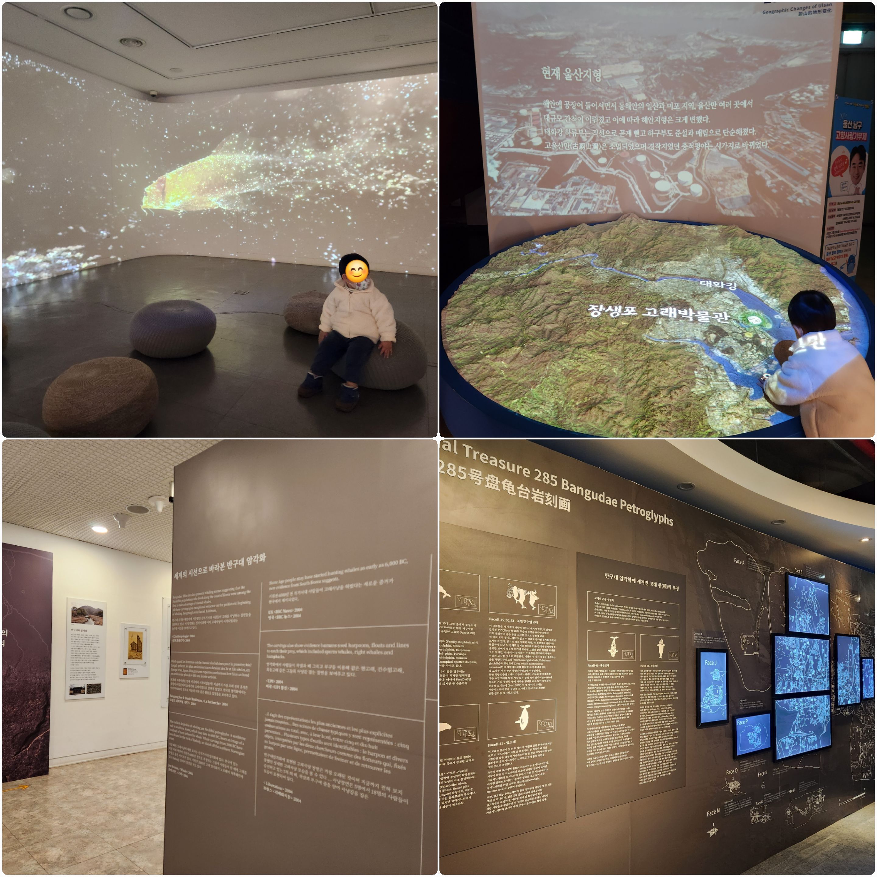 1층에는 고래와 여러 물고기들이 노니는 미디어아트실이 있어 푹신한 의자에 앉아 멍하니 보기 좋았다. 국보 285호로 지정된 반구대 암각화에 대한 설명이 벽면 하나를 다 채웠는데 눈에 들어오려면 애가 많이 컸을 때쯤이겠다. 🥲