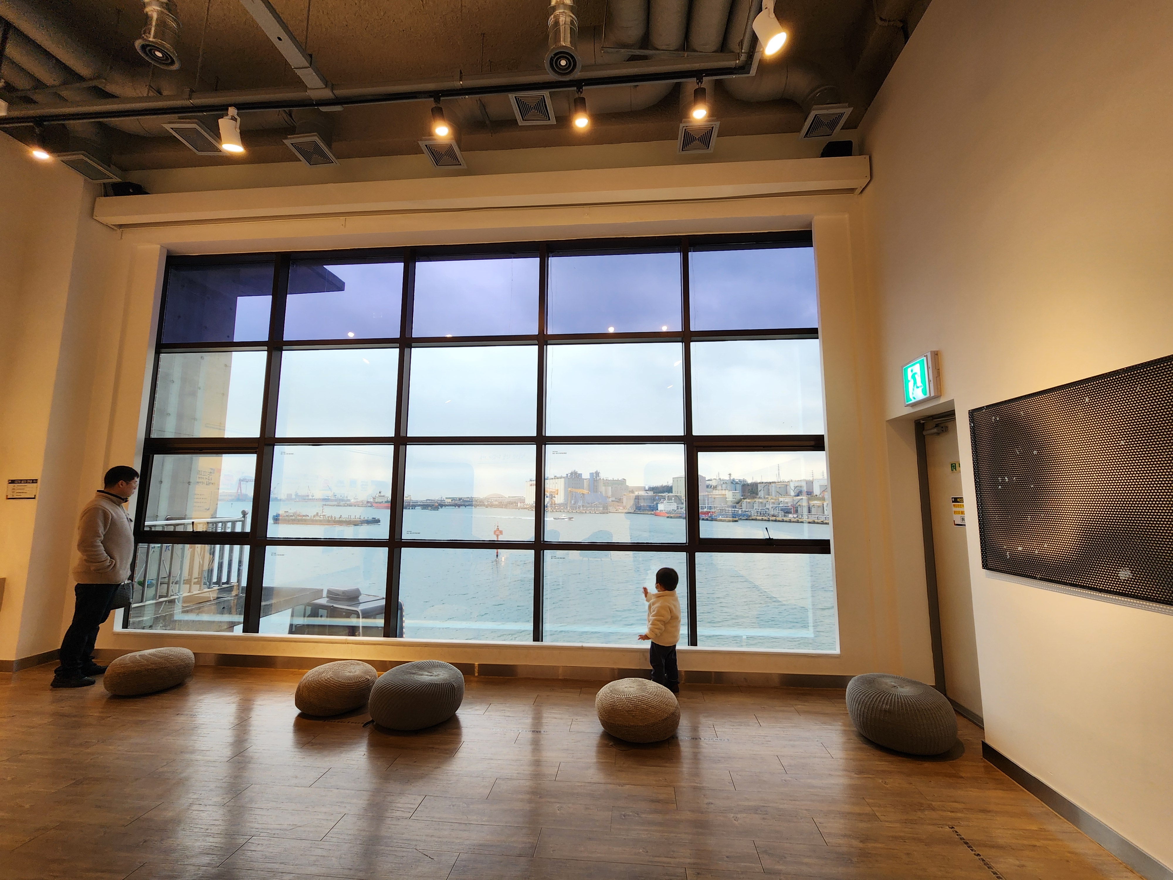 Q&A 옆으로 들어가면 실내 전망대가 있어 배가 움직이는 것을 구경할 수 있다. '통유리였다면 더 좋지 않았을까'라는 생각도 해보았다.